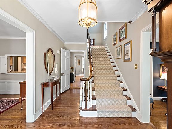 Architectural gem w/the feel of an English Country Estate. Governor's drive w/space for addl pkg/garage expansion. Orig features such as traditional & pegged hw, French doors, 5 & 6-panel doors w/orig hardware, Carrera tile baths, crown mldg, blt-ins & 2 staircases, blend seamlessly w/updates & improvements that expanded the living space. Aggregate front stairs to Entry w/PowRm, overszd wood door & landing w/wdw plus 4' doorways that allow natural light to spill from room to room. Sunken LR w/10' ceil, 5' wdws, wdw seats & frpl leads to Fam Rm w/12' cathedral style ceil, media ctr alcove, frpl & quaint octagonal wdw. DR w/yet another frpl & opening to updated Kit w/granite, custom cabs, 6' isle, 10' pantry/buffet wall. Sunfilled Bkfst Rm w/glass sliders to 18x18 cov'd side porch, sure to become a favorite retreat. Generously szd bedrms, 3 w/ ensuite baths. Spacious LL w/GR, Wine Rm & 2 strg rooms. Amazing location close to Beverly Rd shops & restaurants, schools