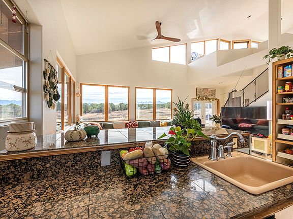 This three bed, two bath home with loft space sits on a 40 acre parcel that has been significantly cleared for aesthetics and fire mitigation. High ceilings and tall windows allow for expansive views toward the Sneffels and San Juan Ranges, and provide significant solar gain during the winter months. A recent partial remodel included adding walls to create bedrooms and upgrading bathrooms, new paint on all interior living spaces, upgrades to the kitchen, and more. A large heated enclosed garage provides plenty of room for at least 2 cars and other toys. 24 hours notice required to schedule showings as there are currently tenants in the home. See what's been done and where a new owner could make additional improvements to create additional value in this property.