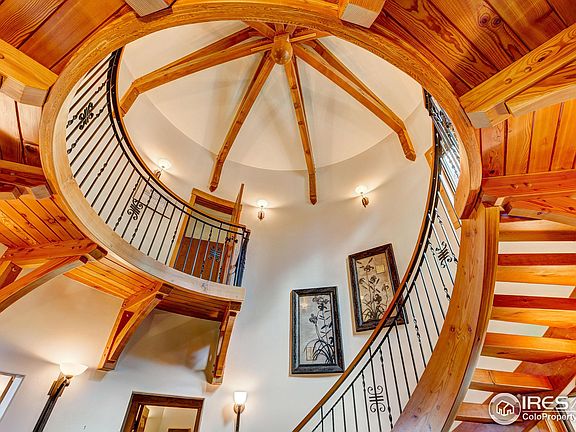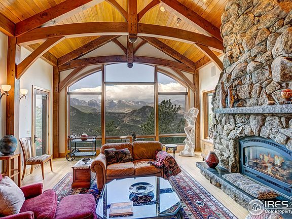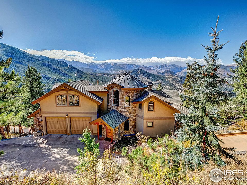 This spectacular mountain retreat is your dream mountain home nestled in the breathtaking beauty of Estes Park! This custom-built home combines high-end modern luxury with rustic charm, offering an unparalleled living experience in the heart of the Rockies. Welcome your guests in the breathtaking two-story rotunda entrance hall with a curved staircase that wraps elegantly around the space. Enjoy spacious living in an expansive open-concept layout with vaulted ceilings, exposed wood beams, and floor to ceiling windows that flood the space with natural light. Perfect for entertaining, the chef's kitchen features high-end appliances & granite countertops on the extra large island. In addition to 4 bedrooms, including a luxurious primary suite with a private balcony, the home has 3 bonus rooms on the upper floor gallery, a media room, wine closet, & large shop. Situated in serene Windcliff Estates that borders Roosevelt National Forest, & offers stunning panoramic views of RMNP, the Continental Divide, & the lush surrounding wilderness. Perched high on St Moritz Trail, this home offers more than just breathtaking views: Imagine watching eagles & hawks soar gracefully against the backdrop of the Rockies, their wings outstretched as they glide through the fresh mountain air. This stunning vantage point allows you to connect with nature like never before, offering a front-row seat to the beauty & majesty of Colorado's wildlife. Step outside to enjoy multiple spacious decks perfect for soaking in the peaceful mountain ambiance. Located just 15 minutes from downtown Estes Park, this home offers endless opportunities for hiking, wildlife watching, and exploring local shops, restaurants, & the largest YMCA in the world. This one-of-a-kind property is your chance to own a piece of Colorado paradise. Whether you're seeking a year-round residence, or vacation home, 1531 St Moritz Tr is the perfect choice to live your best Colorado life!
