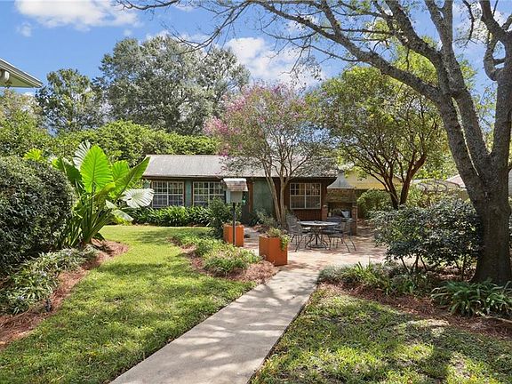 Welcome to your private lakefront oasis on nearly a ½ acre lot! This custom built cedar board and batten cottage is nestled under a grand live oak tree with front and side porches, expansive grounds with beautiful landscaping, and multiple outbuildings including a garage, workshop, potting shed, screened-in pool house, and even a chicken coop! Enjoy the spacious custom kitchen with cypress cabinets, silestone counters, water filtration system, and stainless steel appliances. Fantastic floor plan offers formal living and dining rooms as well as a breakfast area and den with a wood burning fireplace. The first floor primary suite overlooks the gardens with heated bathroom floors and a walk-in closet. Custom built-ins and gorgeous natural light make for the perfect home office in the dedicated study. The second floor functions as a huge den and multi-purpose room with a full bath and fantastic storage space. Wide plank hardwood floors throughout the first floor and cork floors on the 2nd floor. This property offers immediate access to the levee just blocks away from the gorgeous new Bucktown Harbor Park with a kayak lane! Home has never flooded and is located in the preferred X flood zone.