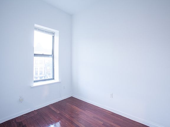 You will be blown away entering this enormous 1000+ Sf top floor apartment in a Brownstone townhouse. Apartment has 3 bedrooms each with a closet, 1 full bath plus an office with a skylight that can be used as a fourth bedroom. A few added perks, there is a washer-dryer hook up in the unit, central AC/Heat, plus the kitchen has two sinks, and a large refrigerator. Ceiling heights boast 10FT-11FT (approx) with cherry hardwood floors that have been polished to display a deep shine. Apartment has been completely painted and ready for immediate move in! Call now to schedule, this will not last! Additional features of this property include: Central AC/ Heat.