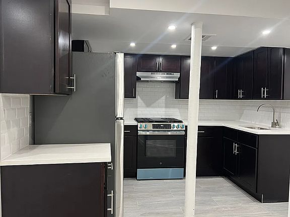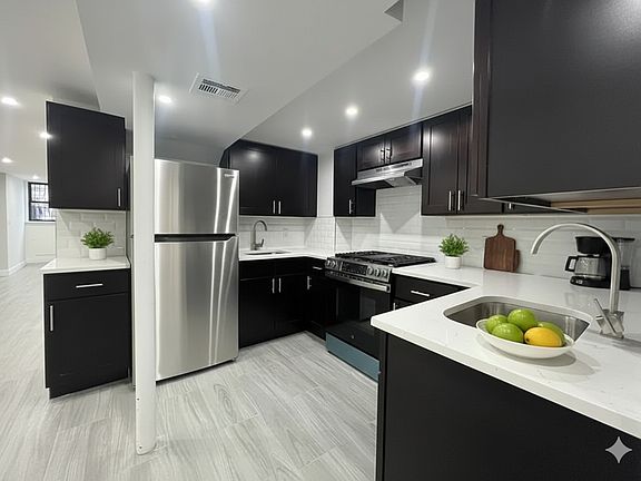 Renovated garden-level 1BR + 2 bonus rooms with private backyard and central air in Crown Heights (between Kingston & Albany). Oversized living room, private entrance, new stainless kitchen with dark cabinetry and subway tile, fully tiled bath with soaking tub, recessed lighting, and easy-care tile floors. Flexible layout for WFH or guest space; close to neighborhood shops, cafes, and transit.