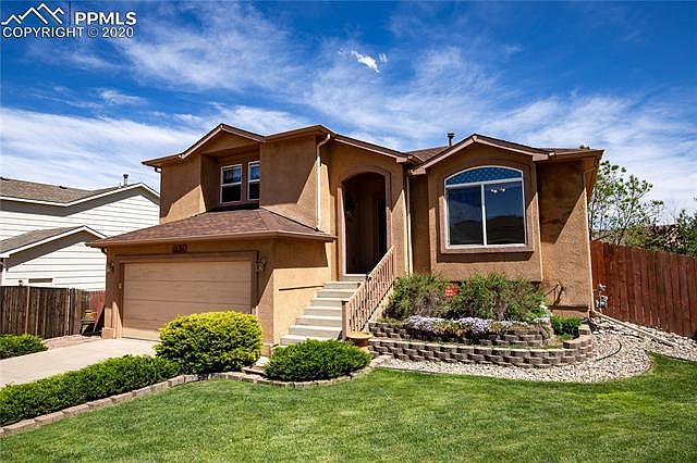Don't Miss This Opportunity! Beautiful Home in Immaculate Condition on Westside in Desirable Crown Hill Mesa. Stucco Exterior & Perfectly Manicured Yard. Bright, Open Floorplan w/ Hardwood Floors from Entry Into Kitchen & Dining Area. Spacious Kitchen has Smooth Top Range, Built-in Microwave, Refrigerator, Large Pantry & Generous Counter & Cabinet Space. Kitchen is Open to Dining Area w/ Ceiling Fan. Dining Area Walks Out to Expanded Trex Deck Overlooking Lush Back Yard & Offering Cheyenne Mountain Views. Deck Accesses Oversized Patio. Formal Living Room has Large Picture Window, Ceiling Fan & Gas Fireplace w/ Tile Hearth & Surround. Lower Level is Garden Level w/ Family Room w/ 2nd Gas Fireplace and Half Bath/Laundry Room. Upper Level Features Master Bdrm w/ Private Bath, Walk-in Closet & Ceiling Fan & 2 Addn'l Bdrms & Full Bath. Garden Level 4th Level is Unfinished, with Space to Accommodate Rec Room, 4th Bdrm & Bath. This Home is Move-In Ready!
