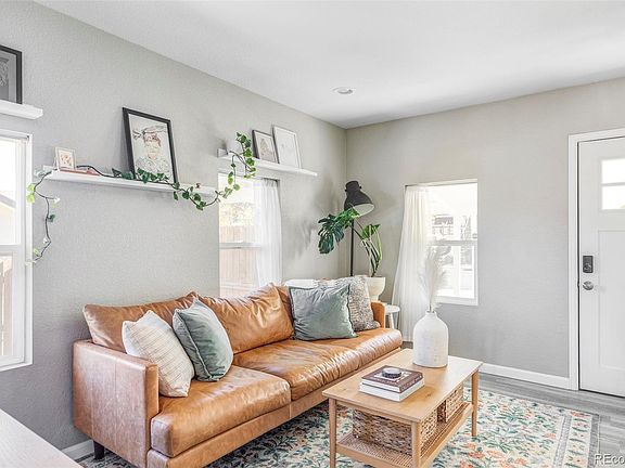 Thoughtfully renovated, this Athmar Park home is a vision of inviting comfort. Charming curb appeal is inspired by a covered front porch overlooking a beautifully landscaped front yard. Positioned south-facing, the interior is drenched in natural light from large windows. A brick floor-to-ceiling fireplace with a new mantel grounds the open living area. The kitchen beams with all-white cabinetry, stainless steel appliances and a tile backsplash. A sizable main-level bedroom is highlighted by an en-suite bath and a walk-in closet. Downstairs, the lower level offers a flex area with a wallpaper accent wall. A spacious secondary bedroom is complemented by a three quarter bath. A designated laundry room completes the lower level. Tile flooring runs underfoot in a sunroom opening to a patio in a fully landscaped backyard complete with raised garden beds, privacy fencing and a shed. Ample parking is offered with a two-car detached garage and a one-car attached carport. This property is eligible for a lender credit of up to 1.75% of the loan amount towards borrower closing costs, pre-paids or rate buydown under the Community Reinvestment Act. Contact Listing Agent for more details.