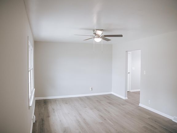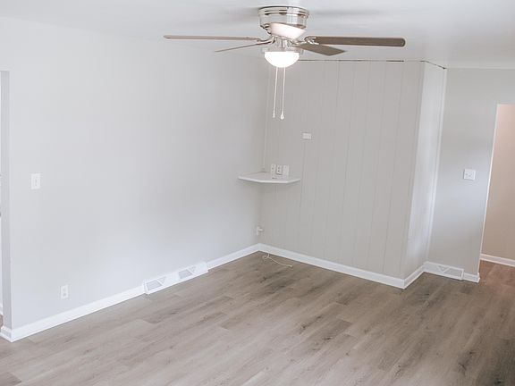 Great 4BR, 1BA stone ranch located on quiet street with no neighbors behind. Large living room, kitchen/dining combo with all appliances provided for buyer. All new flooring including LVP in the living areas and carpet in the bedrooms, and fresh paint throughout. Full bathroom with tub/shower combo. Laundry room with newer HVAC & water heater. Nice sized lot with covered back patio, mature trees and storage shed. Newer dimensional roof and vinyl replacement windows. Former attached garage has been converted into 4th bedroom, could easily be converted back into a garage if buyer so desired. This home is move-in ready, with immediate occupancy at closing.