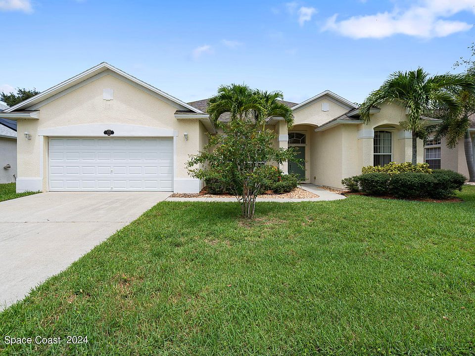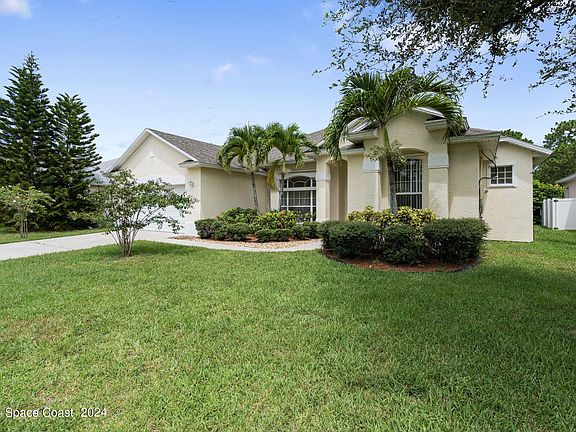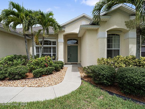 Discover your dream home in West Melbourne, FL! This stunning 4-bedroom, 2-bathroom pool home offers the perfect blend of comfort and style. As you step inside, you'll be greeted by an open floor plan with spacious living areas, perfect for entertaining. The gourmet kitchen features white appliances, ample cabinetry, and a breakfast bar. Retreat to the large primary suite with a walk-in closet and a luxurious en-suite bathroom. Three additional bedrooms provide plenty of space for family or guests. Outside, enjoy the Florida lifestyle in your private pool and covered patio, ideal for relaxing or hosting summer gatherings. The roof is 2023 and the HVAC was replaced in 2020. Located in a peaceful neighborhood, this home is close to top-rated schools, shopping, and dining, making it the perfect place for your family to thrive. Don't miss this rare opportunity to own a piece of paradise!