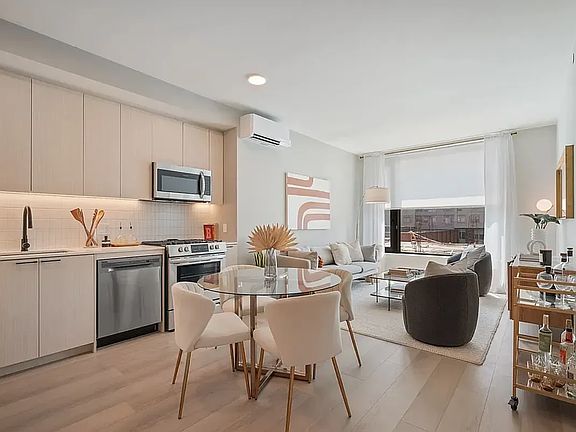 **With interiors by Alchemy Studio, THE 88 offers residents a boutique building atmosphere with designer homes envisioned to bring tranquility to everyday life. Studio, one-bedroom, one-bedroom with home office, and two-bedroom rental residences boast expansive floorplans, with picturesque views over the development's extraordinary Infinity Garden or the lush tree-lined 88th Avenue. Custom floor-to-ceiling windows ensure that interiors are bathed in natural light to let the outside in. Chef-quality kitchens meticulously finished with neutral white oak cabinetry, white quartz stone countertops, and a full suite of premium-quality Frigidaire appliances are as practical for preparing holiday feasts as they are for arranging Sunday brunch. Bathrooms are designed with a hotel spa-inspired contemporary ambience with natural stone custom vanities and standing glass showers in several homes. Select residences also offer exclusive private rooftop terraces that provide a unique perspective of the Queens streetscapes, the hillsides of Jamaica and historic Rufus King Park.**