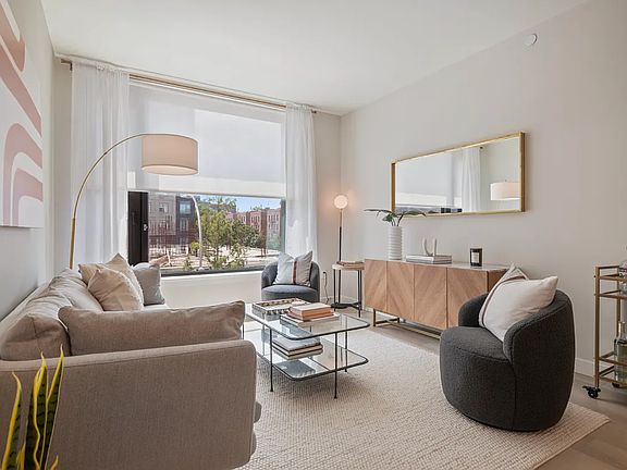 **With interiors by Alchemy Studio, THE 88 offers residents a boutique building atmosphere with designer homes envisioned to bring tranquility to everyday life. Studio, one-bedroom, one-bedroom with home office, and two-bedroom rental residences boast expansive floorplans, with picturesque views over the development's extraordinary Infinity Garden or the lush tree-lined 88th Avenue. Custom floor-to-ceiling windows ensure that interiors are bathed in natural light to let the outside in. Chef-quality kitchens meticulously finished with neutral white oak cabinetry, white quartz stone countertops, and a full suite of premium-quality Frigidaire appliances are as practical for preparing holiday feasts as they are for arranging Sunday brunch. Bathrooms are designed with a hotel spa-inspired contemporary ambience with natural stone custom vanities and standing glass showers in several homes. Select residences also offer exclusive private rooftop terraces that provide a unique perspective of the Queens streetscapes, the hillsides of Jamaica and historic Rufus King Park.**