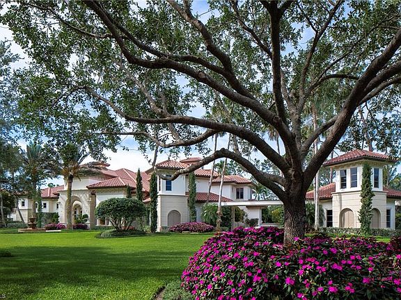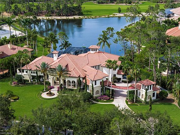 GOLF MEMBERSHIP IMMEDIATELY AVAILABLE! Masterfully designed two story estate by Kurtz Homes with fantastic Southern exposure lake & golf course views. This striking residence features wood adorned volume ceilings, climate controlled wine cellar, elegant marble & wood flooring & unparalleled outdoor views. State of the art stainless steel built in appliances, light wood cabinetry, granite center island & countertops are found in the gourmet kitchen. Two sets of 90 degree disappearing sliders in the spacious family room provide seamless transition from indoor to outdoor living. The main floor master suite is a relaxing retreat with a luxurious master bath with a jetted soaking tub, his & hers vanities & walk in steam shower with lush garden views. The second story loft encompasses two guest suites, home theater & additional bonus room all with a covered wrap-around veranda. With outdoor access from almost every room in this estate, the covered multi-level lanai allows for endless entertaining, featuring a covered fireplace, summer kitchen, dining areas & lighted bocce ball court. Flowing lake & golf course views.