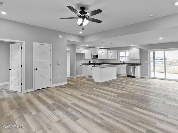 Discover modern living in this brand-new 3-bed, 2-bath slab home nestled in the sought-after Southern Boone School District. The open floorplan seamlessly integrates a stylish kitchen with an island and pantry, perfect for culinary enthusiasts. An office/bonus room adds versatility to the layout. Unwind in the master suite featuring his and hers closets and a luxurious custom-tiled shower in the master bath. Efficiency meets comfort with a high-efficiency furnace. Enjoy the outdoors on the covered patio or utilize the oversized garage with a convenient bumpout for extra storage. This one has all the extras that you really need!