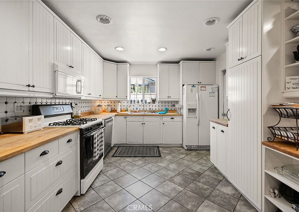 Remodeled in 2017 with new flooring, New AC, canned lighting and ceiling fans, new skylight bringing a ton of natural light into the huge living room, new sliding glass doors for 3 bedrooms opening to the back yard. Two full baths with low, easy step in access to shower and 1/2 bath added, Newly painted Outside and new "water saver" grass in front with succulents landscaping. The Wow factor is the open living space when you enter the front door. It is very warm, inviting, spacious, relaxed, calm and quiet inside. The open floor plan and large kitchen with beautiful country kitchen cabinets, stainless steel sink and tile backsplash with butcher block counter tops. the built-in country dining nook /seating and updated electrical ceiling lighting. This home has many updated features such as new electrical wiring throughout (up to code wiring and breaker panel as well as all the plumbing was replaced in 2005/06 with cooper pipes. Beautiful French doors lead out to covered back patio.