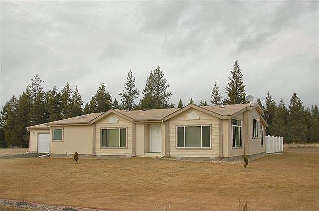 Triple Wide with GREAT floor plan on almost 7 acres! Vaulted ceilings, nice kitchen island, oak cabinets, lots and lots of space throughout home! Huge Master Suite with luxurious and spacious bathroom. Six foot vinyl fenced backyard, Lots of great land, spots for shop and garden, trees, and views of the mountains!