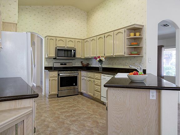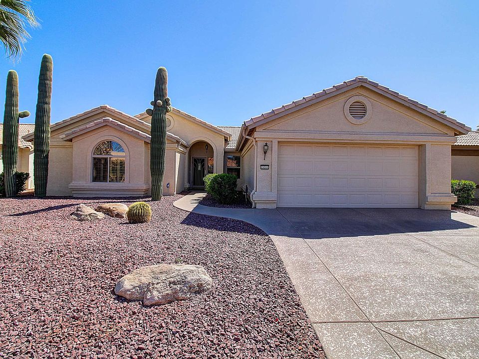 Here's your opportunity for a Topaz on the golf course, with a south facing backyard that you see as you walk in the gracious foyer! The kitchen has a new gas range and new microwave, and upgraded granite. All appliances are included: new washer/dryer (electric with gas available and refrigerator), water softener and reverse osmosis. There are plantation shutters on most windows. The master bedroom ensuite has a walk-in shower. The guest bedroom has a full walk-in closet. The den has a built in bookshelf and cabinet. There are solar tubes in the kitchen, guest bath and master closet. There is a large patio, with a brand new roof, a built-in barbeque and a large backyard. There is even room in the garage for a golf cart and 2 cars!