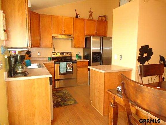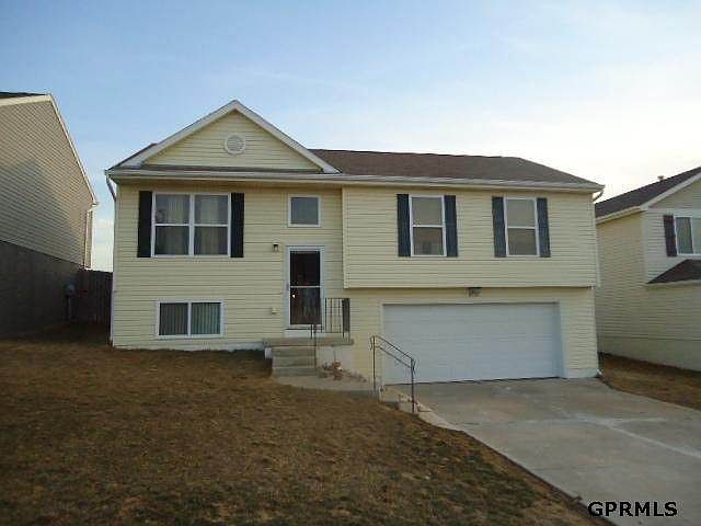 Updated split entry, tall maple cabinets, oak entry steps, two level deck, playground equipment with slide, vinyl siding, tile in rec room with carpet, built in bench, new driveway being installed. Bennington Schools.