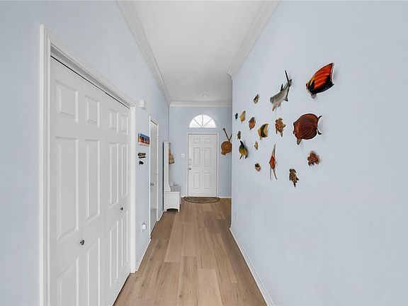 WELCOME TO YOUR SLICE OF COASTAL PARADISE! This easy-to-maintain 3-bedroom, 2-bath home offers 1,609 sq ft of relaxed elegance on a serene water canal with quick access to the Intracoastal Waterway. Step outside to the east-facing multi-level deck - where every sunrise paints the waters with possibilities. Sip your morning coffee or cast a line from your private dock before the world wakes up. This outdoor haven isn't just a feature - it's a daily invitation to savor the serenity of Island life. Inside, a spacious living area is anchored by a cozy corner wood-burning fireplace and flows seamlessly into the updated coastal kitchen and dining space. Storm shutters on every window and a new roof (2021) offer peace of mind and protection. The kitchen and dining area shine with modern updates, while the open-concept layout welcomes natural light and coastal breezes throughout. The primary suite is generously sized, with a bath that features dual sinks, a garden tub, separate shower, and a large walk-in closet. Additional highlights include: electric boatlift & private dock; attic storage in garage; easy-care landscaping (no lawn to mow); located in the highly desirable Point Tesoro subdivision. Whether you're seeking a full-time residence or a weekend escape, THIS low-maintenance coastal gem delivers the best of Island living. Furnishings are negotiable. Come Coast Awhile...right here!
