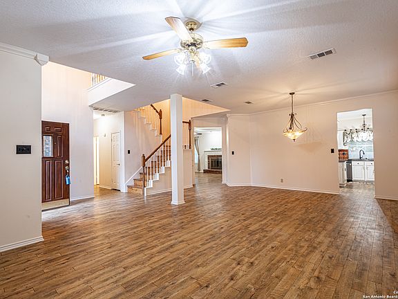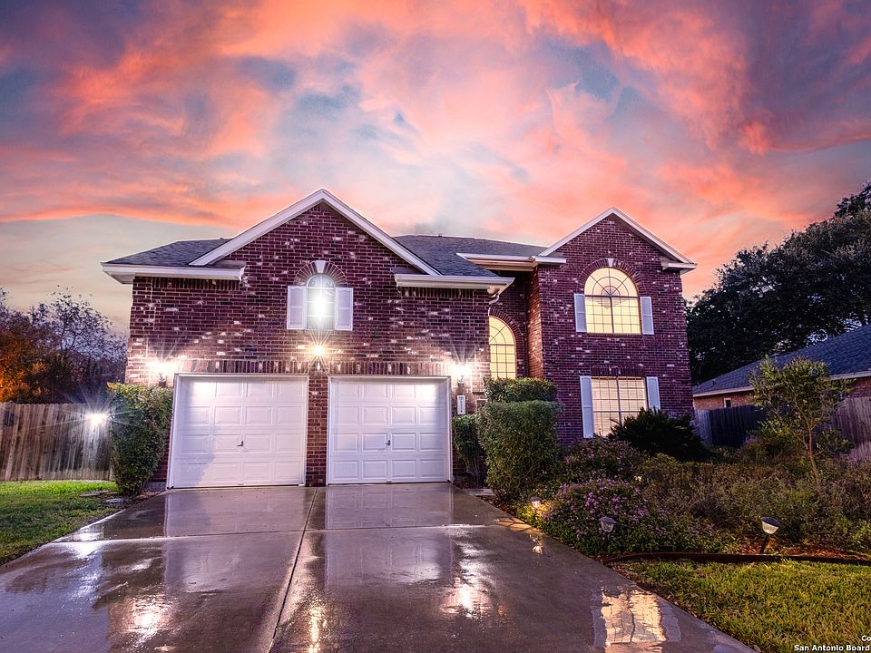 Tucked away on a peaceful cul-de-sac in a small, charming neighborhood, this expansive, 3024 sq ft 5-bedroom, 3-bath home offers flexible living in sought-after North Central San Antonio. Built by Centex (Denmark floorplan), it features a bright, open-concept layout with soaring ceilings and beautiful laminate flooring throughout. A full bedroom and bath downstairs is perfect for guests, a home office, or MIL suite. Upstairs, enjoy a well-placed laundry room, oversized secondary bedrooms, and a luxurious primary suite with dual walk-in closets, separate shower, and garden tub. This energy-efficient home includes radiant barrier insulation (2023),a 19-21 Seer Lennox HVAC system (2017) as well as ducts replaced, and a water softener installed in 2020- all designed to keep utility costs low year-round. The backyard is an entertainer's dream: a massive 26' x 11' covered patio spans the width of the home, leading to a 24ft above-ground pool with its own deck-perfect for summer relaxation or weekend gatherings. NEISD Schools. Conveniently located close to major highways, shopping, and dining-this one checks every box! Seller offering concessions for rate buy down or updates with full price offer!