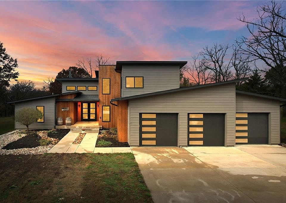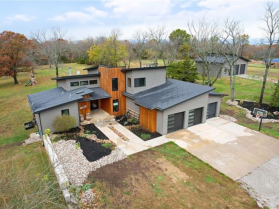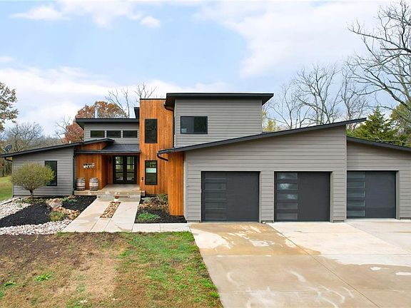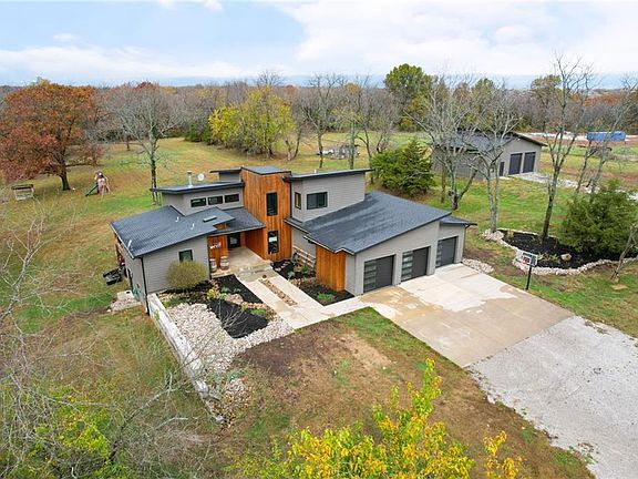 If you are looking for your own private oasis, then you must see this stunning contemporary home on 13 acres. The quality of this custom built home shines through both inside and out. You enter into an inviting, open floor plan with vaulted ceilings. Look through the wall of windows to your secluded back yard. The kitchen is a cooks dream with ample counter space, stainless appliances and huge island. The main level offers a master bedroom with built-ins, en suite and a door to your own private deck overlooking the peaceful back yard. The upper level is bathed in sunlight and offers a bedroom, full bathroom and bonus area that could be a great play room or possibly 6th bedroom if needed. The lower level provides 3 additional bedrooms, full bathroom, rec room and safe room. There is ample storage in the utility room as well. The acreage offers a nice mix of wooded area, trails and cleared land. The custom built workshop has a concrete floor, electric service and 2 garage doors... plenty of room for the toys. Finally, there's even your own private, stocked pond! Located off the coveted Smart Road in Lee's Summit school district. If you are looking for your own little slice of heaven, this property is the one for you!