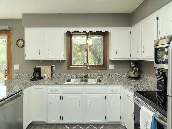 A PARK-LIKE ACRE like this is so hard to find at this price point! This beautifully maintained home is situated on a gorgeous flat lot dotted with mature trees. Convenient Otsego location is literally minutes from Target, Rockwoods, schools, and a short bike ride from the Otsego Regional Park along the Mississippi River. Fresh updates to the kitchen include paint, newer stainless steel appliances, and granite countertops. Large deck looks over the beautiful south-facing yard. Two 12x10 sheds give you lots of storage, and the lot would easily accommodate a pole barn. Roof replaced in 2022, furnace and A/C replaced in 2018. Asphalt driveway installed in 2018, with a large concrete pad for your boat or RV! Home is super energy efficient--total gas and electric bills are usually under $120. Updated septic is in perfect compliance. Homes on acreage offering this much AND under $400K are a rare find, so don't wait!