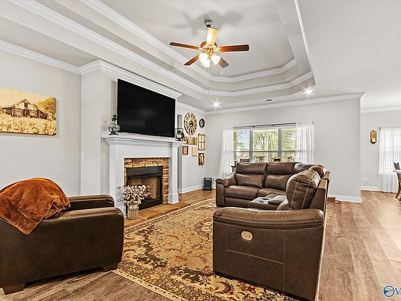 - Features: 10’ + Ceiling, Ceiling Fan(s), Crown Molding, Fireplace, Smooth Ceiling, Tray Ceiling(s)