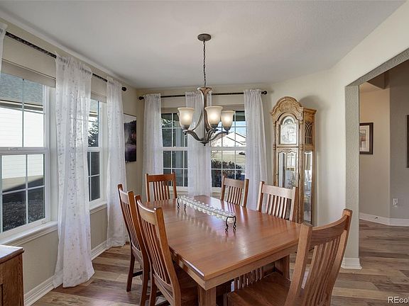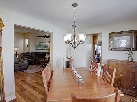 WOW! Heritage Todd Creek maintenance-free Paired Home with an amazing court location, finished walk-out basement, backing to a greenbelt with Mountain Views! This 2 bedroom 3 bath home features a main level with new hardwood floors throughout the living areas, new carpet in the bedrooms, and newer stainless steel appliances in the kitchen. The primary bedroom has views out the back of the home to the greenbelt and mountains with a large primary bath and ample walk-in closet. The main level offers a large living area with fireplace, an eat-in kitchen with both connected to the family dining room. There is also a secondary bedroom with a bay window plus a full bath and a laundry/mudroom entry from the oversized 2 car garage. Off the kitchen and living areas you will find an expanded trex deck for outdoor living with some nice mountain views. Descend the stairs to the walkout finished basement featuring a great wet bar, fireplace, wonderful entertainment and theater space, and a full bath. Walkout the sliding door to the expanded and partially covered patio with a large gas fire-pit and a back yard for outdoor entertainment. The home is just a short walk from all the activity and amenities of the clubhouse, restaurant, pools, and golf course. A great home in an amazing 55 plus neighborhood that you do not want to miss!