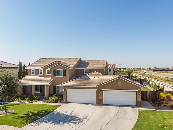 Corner lot in the gated community of Saddleback at Tallus Ranch in northwest Bakersfield. Two story house with 5 bedrooms (1 bed downstairs), 3 baths (one full bath downstairs), office, loft, and a formal dining room. This property features a split wing design with upstairs loft room, custom blinds, recessed lighting, formal dining room, and a spacious great room. All rooms are pre-wired for ceiling fans with dimmer switches. The lovely kitchen offers a breakfast nook, stainless steal appliances, beautiful backsplash, dark wood cabinetry, walk-in pantry, island with a sink, upgraded beautiful tile flooring, and cabinets throughout. The laundry room includes large overhead cabinets. The master bedroom offers a full bath with dual sinks, separate jetted tub plus shower, and a walk in closet. Completely finished 4 car garage. Exterior outlets for Christmas lights, luscious landscaping, spacious backyard and so much more to offer. Call your favorite Realtor today!
