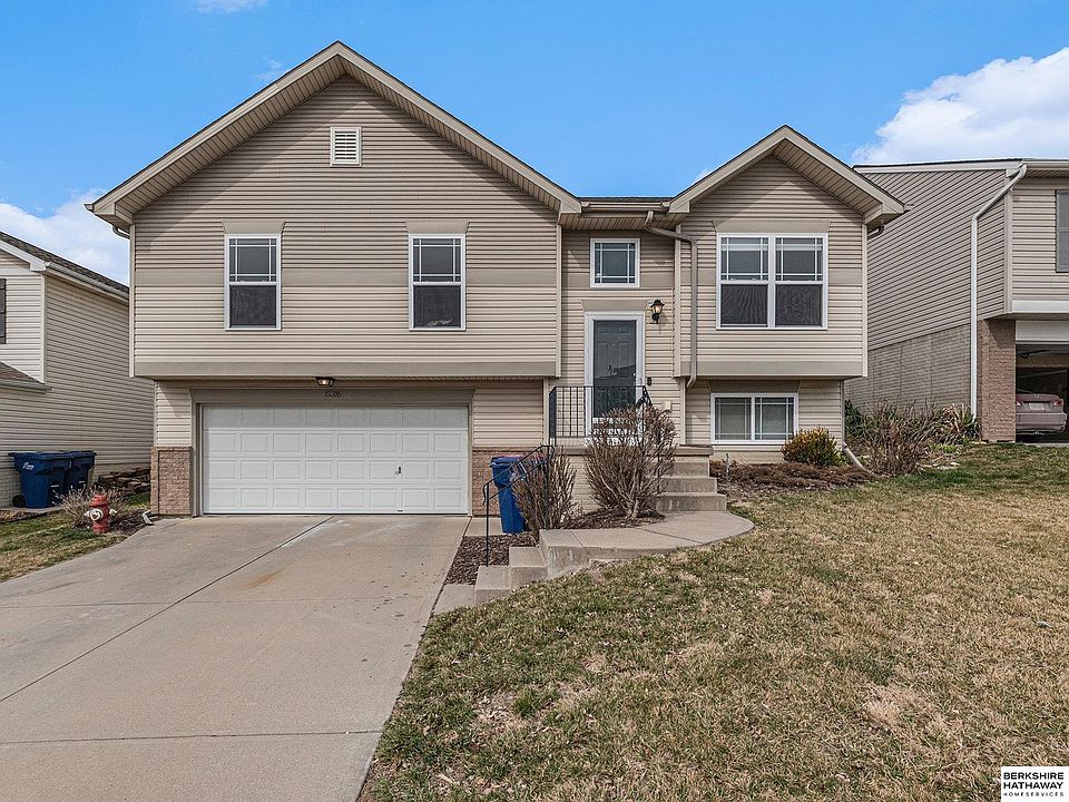 Welcome to the inviting community of Bennington, Nebraska. This well-appointed and Pre-Inspected 3-bedroom, 2-bathroom split-entry home captures the essence of modern living with its cathedral ceilings and a spacious layout with abundant natural light. The heart of the home, a practical galley-style kitchen equipped with all appliances, offers a pantry for ample storage and effortlessly flows to the outdoor deck. Retire to the master suite, featuring a 3/4 bathroom for a restful escape. The additional bedrooms offer space and versatility for family, guests, or a home office. The finished daylight basement serves as a cozy family room, complete with a warming fireplace, ideal for relaxation and entertainment. The oversized attached 2-car garage provides convenience and added storage. Clad in durable vinyl siding, this residence promises a combination of style and low maintenance. Embrace the opportunity to call this house your new home.