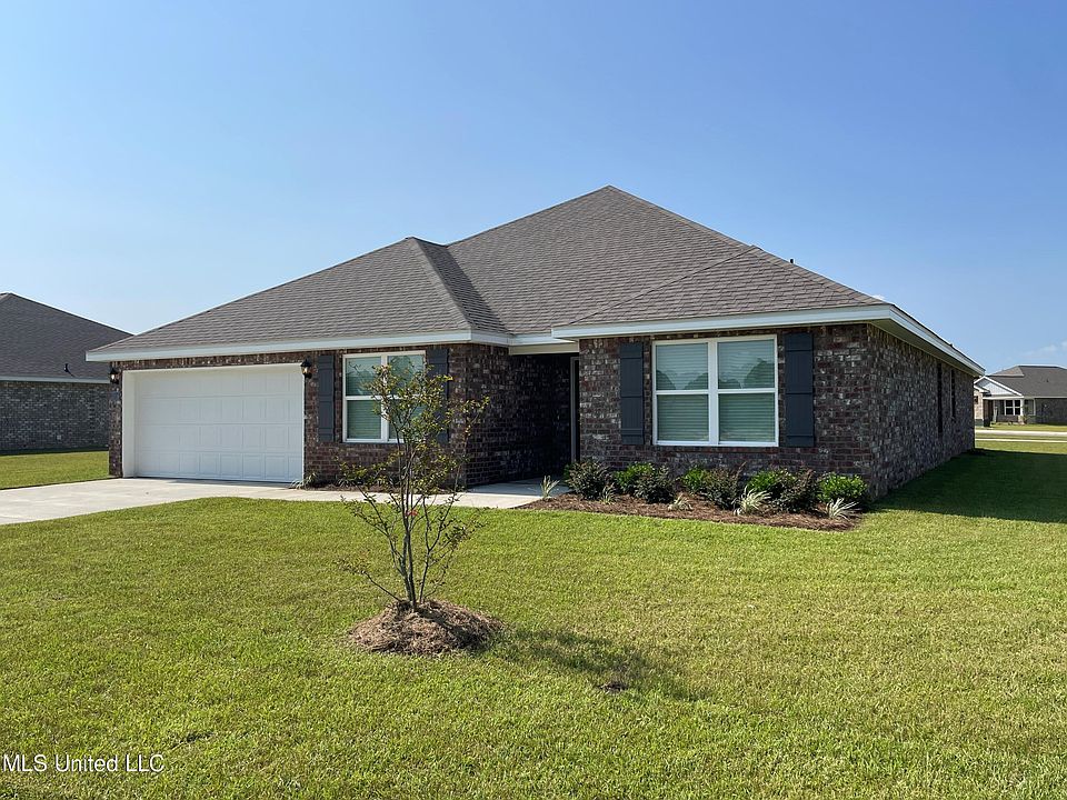 ---GUESS WHAT -- SINGLE STORY 5 BEDROOM 3 BATH HOME ON A CORNER LOT WITH 2 CAR GARAGE. -- COMPLETION DATE 7/19/2023 -- New to this area. If you are familiar with the Destin Floor Plan, wide open space, the Sawyer is similar with one extra bedroom up front. Limited picture, but come out and see the progress. Come and visit our top-rated Sawyer plan- a best selling 4-sided brick with vinyl gables and an attached 2 car garage. Enjoy luxury vinyl flooring throughout the home's living areas, complimented by plush carpeting in each of the bedrooms. The kitchen and bathroom countertops gleam with stunning granite, a spacious island provides ample space for meal prep and entertaining. The primary bedroom is tucked away on the opposite side of the house for added privacy. The primary bedroom offers a true oasis with a soaker tub and a large shower, dual vanities, and a generous walk in closet. You'll appreciate the elegant recessed LED lighting and smart home features. You you will never be too far from home with Home Is Connected.® Your new home is built with an industry leading suite of smart home products that keep you connected with the people and place you value most. This home was built with engineered trusses and expansion joints for an exceptional insurance rating. The roof and exterior also feature zip sheathing- a durable and reliable material specifically chosen for its ability to withstand high winds and wind driven rain. Community is located minutes from I-10, Keesler Air Force Base, Ocean Springs and Biloxi Beaches. Casino and family entertainment within a few miles. Promenade shopping approximately 7 minutes West.