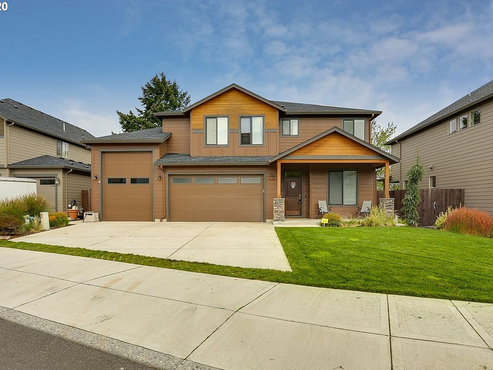 Your RV/boat/toys will be happy in this enormous RV garage plus room for 3 cars! You will be happy in this gorgeous, like new home. Large kitchen w/quartz counters and butler's pantry makes entertaining a breeze. Stacked stone fireplace will keep you warm during the rainy season.Oversized bedrooms and upstairs laundry room makes for comfortable living.Enjoy your private backyard that backs to a greenspace with a built-in bbq under a covered patio!HOA covers front yard & park.