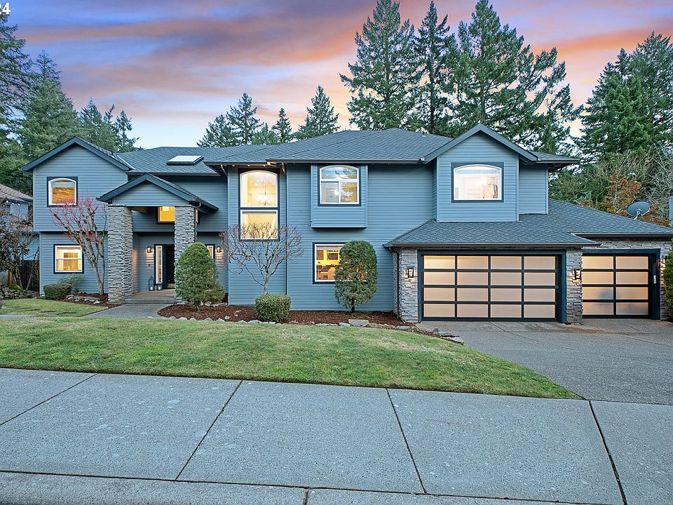 Expansive and Elegant Traditional Home on Bull Mountain in the sought-after Mountain Gate Neighborhood. This traditional contemporary, nestled among Norway Maple tree-lined streets, features thoughtful modern updates and ample space to grow. Ideal for a multi-generational family or as an ADU rental opportunity, this 3-level home includes a finished daylight basement with an expansive 1-bedroom apartment; offering a hobby room, abundant storage, private patio, and exterior entry. The main floor bedroom with ensuite bathroom, provides privacy for guests or a tranquil home office. The well-designed chef's kitchen, equipped with Energy Star appliances and a wine fridge, seamlessly transitions from cooking to entertaining. The private covered deck on the main level is an entertainer's dream, featuring a TV and whole-home built-in speakers. Gas fireplaces on each floor create a cozy ambiance, complemented by dual-zoned fuel for intelligent heating throughout the home. The Primary bedroom is a retreat with a sitting area, fireplace, private deck, and an elegant ensuite bathroom featuring a spacious walk-in closet, radiant heat flooring, and a luxurious shower for two. The garage accommodates 3 cars, with the option to add a 4th using the custom car lift in the small bay. Partitions between the garages create a secure and private space, ideal for an ADU renter, or multi-generational household. All home systems are updated/new. Enjoy close proximity to shopping malls, upscale grocery, golf courses, hiking trails, and nature preserves. Bull Mountain serves as a gateway to wine country and offers a central location for a short commute to PDX City Center, Beaverton, and Hillsboro. This residence combines luxury, functionality, and convenience in a prime location.
