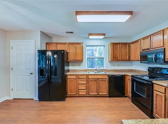 This Mint Hill one-story offers a deck, a fireplace, and a two-car garage. Upgraded features include fresh interior paint and new carpet in select rooms. Home comes with a 30-day buyback guarantee. Terms and conditions apply.