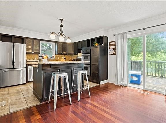 This home sits on a large lot at a desirable cul-de-sac location. The over-sized side entry garage is a great bonus. This front-to-back split home has a wonderful open concept with soaring ceilings and nice updates. Granite counters, stainless appliances (double ovens), cooking island and pantry make this kitchen a dream! Walk out the slider to the back yard deck which overlooks the treed back yard. The bedrooms are nice sized, and all have new windows. The owners' bedroom has two closets and a double vanity at the private bath. Downstairs features a rec room area and a walk out basement to the back yard. Find the sauna with attached shower, and third bathroom next to the laundry area. Don't miss the sub-basement, currently used as a workshop. Fox Ridge is a popular subdivision because of its location near the 119th shopping and entertainment corridor. 2022-08-30