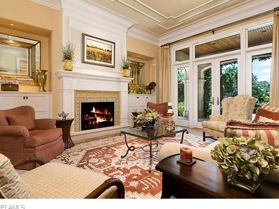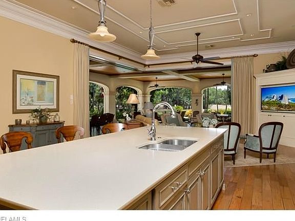 H.9445 - Today's look and feel is highlighted everywhere in this custom built London Bay Estate. Magnificent lake and golf course views greet you from the front door! Kitchen & separate large butler's pantry & her office quarters all accented w/top of the line cream cabinetry & millwork. Oversized office & master wing provide tons of privacy. Upstairs is highlighted w/2 large guest suites, gathering room & full 2nd kitchenette & balcony. Oversized covered lanai w/summer kitchen, bar area, fireplace, bocce court & infinity edge pool, motorized shutters. Golf membership immediately available with this home. NO WAIT LIST!!