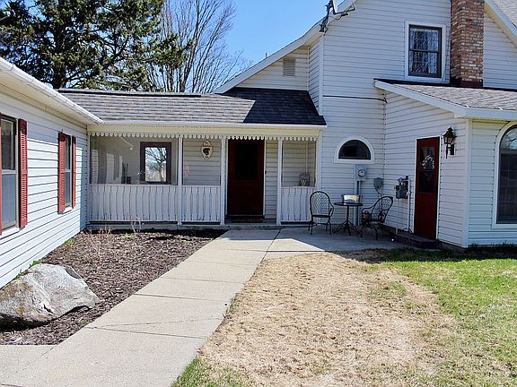 Charming Farmhouse with a beautiful view. The home was built in 1900 but remodeled in 1987. There is 4 bedrooms, 2 baths and the main floor offers access to a large entry way with plenty of storage, main floor laundry, kitchen, living room, dining room and additional den. 3 bedrooms and 1 bath are located on the second floor and the other bedroom and bath on the main floor. Harwood flooring throughout. Basement is unfinished with lots of storage. The home sits on 2.47 acres, has a nice large yard with a garden area and right off the kitchen is a nice patio for outdoor gatherings. There are 2 detached garages, a 2 car garage and 1 car that both have concrete floors and power. New furnace and central air installed Spring of 2020. Location is close to town with country living,