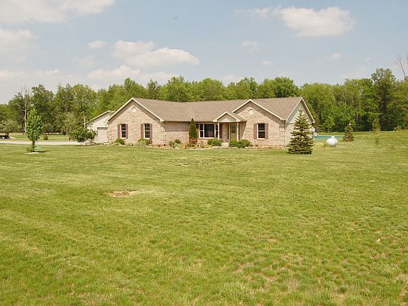 This custom built home is a treasure, all brick ranch sitting on 20 acres(10 acres of woods) 40x60 pole barn with electric and cement floor. Pristine 3/4 acre pond and wildlife galore. This gorgeous home features open concept with vaulted ceilings, master bath with separate shower and Jacuzzi and two walk in closets, custom kitchen cabinets made by Schrock done in hickory. A RARE find!