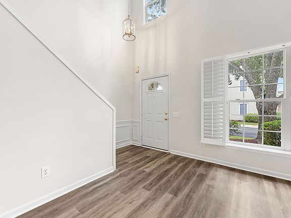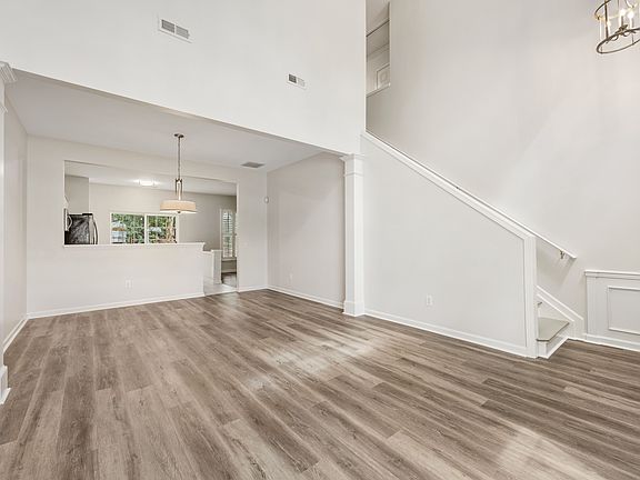 Freshly updated townhome in desirable Ballantyne featuring new LVP flooring, new quartz countertops in kitchen, and subway tile backsplash. Fresh neutral paint throughout this spacious 3 bedroom/2.5 bath home. These townhomes have no shared living area walls and are only attached by separate outdoor storage spaces so it lives like a stand alone home. Main Level features include: Open floorplan with 2 story living room including triple windows and plantation shutters Dining area is large and connected to living room and kitchen. Kitchen with pantry, white cabinets, quartz countertops, tile subway backsplash, stainless steel appliances, tile flooring, sliding glass door leading to private patio Spacious den is located at the rear of the home for added privacy and includes a gas fireplace, triple windows, and plantation shutters, Main level laundry room with washer and dryer included Half bath located off of a rear hall. One car garage with interior access from rear hall Second Floor features include: Primary suite with vaulted bedroom ceiling, triple windows with 2-inch blinds, ceiling fan, large walk in closet Spacious primary bath with garden tub, separate shower, double sink extra large vanity, and separate water closet Bedroom 2 with ceiling fan, and 2-inch blinds Third bedroom with triple windows and blinds Hall bath features new vanity with a tub/shower combination Linen Closet located in upstairs hall Owner pays for water - resident responsible for other utilities.