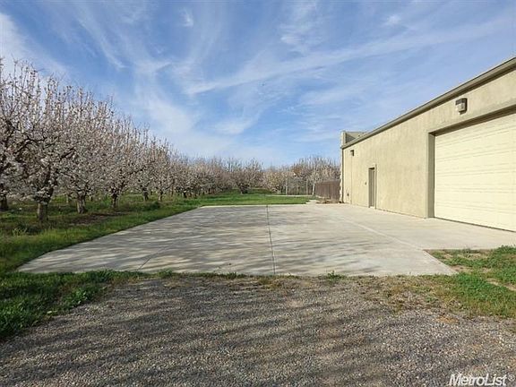 Unique property featuring a 5 acre parcel nestled among other ranchettes with cherry tree orchard on drip system plus 3000 sf building/garage/workshop with 2 large roll up doors. Inside this building there is an approx 600 sf living quarters featuring: central heat & air, 1 bdrm, living rm, bathrm, kit, laundry area & 2 storage/bonus rooms with a closet in each. 2 large cement pads for boat/RV parking. Build your dream home & enjoy this county living lifestyle.