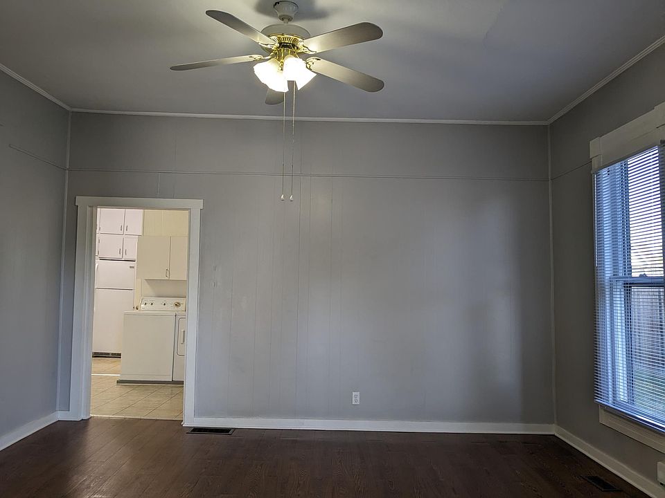 Refrigerator,gas range, microwave,full size washer and dryer,central air/gas furnace ,off street parking, ceiling fans, window blinds,lots of kitchen cabinets/pantry,storage room, new vinyl flooring throughout house, owner does lawn care Tenant pays for all utilities. No smoking allowed.