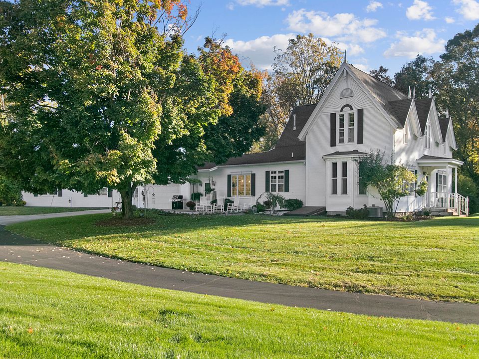 Allegan Country Inn is nestled on 13.9 acres in a beautiful country setting just minutes from Allegan's downtown riverfront area. The Victorian style country home offers modern conveniences with charm and comfort near Southwest Michigan's Lakeshore. Four enchanting spacious bedrooms, a jacuzzi suite, queen sized beds, air conditioning and gas fireplaces. French doors lead to a large screened in porch with white wicker furniture where guests can enjoy the fabulous seasonal settings. Walk to the pond and over the arched white bridge onto the island for a ride in the paddle boat. Walking trails are available for the adventurous. Relax In Your Elegant Country Estate. Look Out Your Window at The Beautiful Pond and Woods Where Turkey and Deer Abound. Actually 2 Complete Homes - One Historic 4 Bedroom, 4 Baths That Has Been Completely Updated, But Still Has Its Charm of Gracious Living. A Second, Separated by A 2 Stall Garage, Is A Newer Construction Ranch With 3 Bedrooms, 2 Baths, Kitchen, Family Room with Built in Hot Tub. Could Be a Home for In-laws, A Bed and Breakfast or Foster Care. Immaculate Lawn with Underground Sprinkling. Huge Pole Barn front part walls are finished, and it is heated with running water. There is also a path for snowmobilers. This place is absolutely beautiful. Make your appointment today. All appliances to stay in both homes and all window treatments.