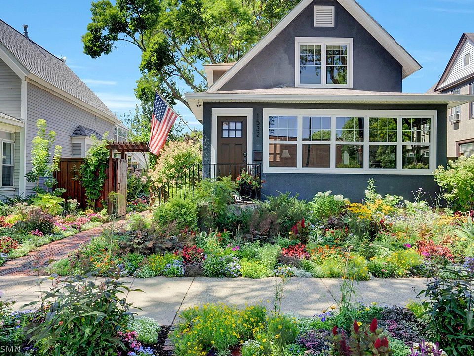 Magnificent gardens. Welcome home to an oasis of relaxation and beauty. A sanctuary for bird, bees, butterflies and hummingbirds. All will enjoy the flowers. A large deck with gas grill directly off a show stopping kitchen. This 1900 era home was renewed in 2016 with everything you can think of. Windows and doors, all electrical, plumbing and insulation. Heated paver driveways and paths frame spectacular landscaping within a fully fenced yard. NE Minneapolis hot spots - the Ritz, Young Joni, Dangerous Man, the river and connecting paths to Downtown Mpls. Resort views from both bedrooms. Stained glass artwork not included.