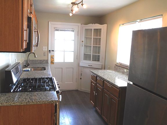 *Updated kitchen with oak cabinets, slab granite counters and stainless steel appliances.