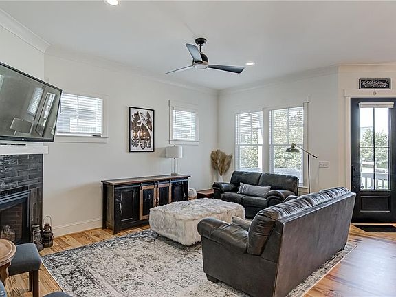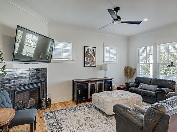 This 3/4-bedroom, 2.5-bathroom home is a perfect blend of modern style and comfort with a southern flare. Located in the Village at Brookberry Farm, a sought-after community with amenities such as pool, clubhouse, fitness center, and playground, this home offers a convenient and enjoyable lifestyle. The main level features an open floor plan with stunning pine floors, a chef’s kitchen with Bosch appliances, solid surface countertops, and tile backsplash, a dining room, and a cozy den with a gas log fireplace. The primary bedroom has double doors, a private bath with dual sinks, a soaking tub, and a separate shower. The screened porch and patio with a fire pit are ideal for relaxing or entertaining. The upper level has two more bedrooms, a full bath, and a flex room that can be used as a fourth bedroom just add a closet or, an office/media. The attached garage has space for two cars and the yard maintenance is included in the HOA fee. This home is a fabulous find in a great location!