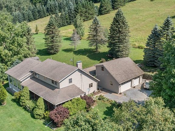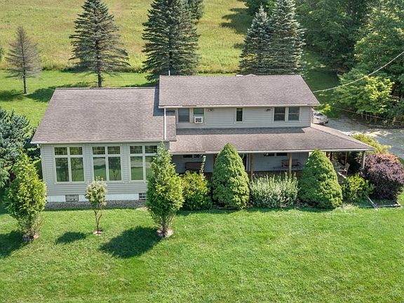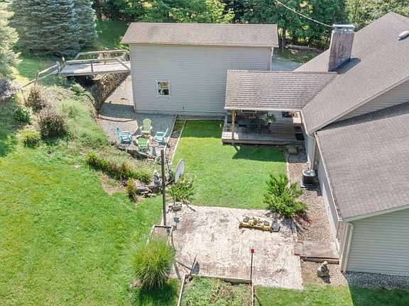 WOW! This 3+BR, 3BA home on 29 acres offers privacy and views and is in immaculate condition. Newer floor coverings, granite counters, first floor master suite. A large family room with fire place and vaulted ceiling, an awesome covered porch with a stone patio and fire pit in the rear, a large, covered, wrap around front porch with a view of the mountains, and a detached 2-story three car garage are just a few of the highlights. The main level offers a vaulted living room, a huge eat-in kitchen, a spacious family room with electric fireplace and walls of windows, and the master suite. In the basement, enjoy a den/craft room, an office, a large living area, a half bath, and the utility area. The second floor has two bedrooms and a full bath. The property is about 2/3 wooded with fruit trees, blueberry bushes, and tillable ground as well. The seller is conveying 100% of their interest in the leased oil and gas rights too. Just $425,000