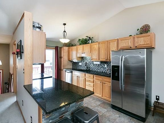 Remodeled 3 bdrm, 2 bath split-foyer walkout. Open floor plan with cathedral ceiling & two-story foyer. Kitchen updated /w/stone tile backsplash, granite counters, tile floor and stainless appliances. Decks off the kitchen & dining area. The lower level family room has a wonderful bar & stone surround fireplace. Large master bedroom w/walk-in closet. Main level bath has a two sink areas, one adjoining to the master bedroom. Large fenced backyard with patio, 2 sheds. Parking pad to the side of the home.