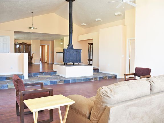 Gorgeous home sitting on 40 acres! This 4 bedroom and 3 bathroom is far enough away from town to enjoy the peace and quiet but still easy access to town and freeway. Living area has vaulted ceilings, refurbished fireplace from the 1800's and beautiful rock work. Throughout the home is beautiful flooring, many windows vaulted ceilings and views! The master bedroom/ bathroom has plenty of storage sp
