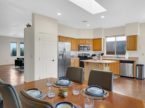 Applications will be reviewed on 7/25/25. Charming 4BR/3BA single story, Santa Fe style home located on a private corner lot in desirable Crest Ranch Subdivision. Spacious greatroom w/cozy fireplace, polished concrete floors in main living areas and new carpet in bedrooms. New stainless steel gas range, built in microwave and dishwasher, in addition to new recessed lighting in kitchen. Master bedroom features private door to back patio, soaking tub, shower, dual vanity, and sizeable walk-in closet. Lg block walled in bkyd. Conveniently just minutes away from UofA, Banner UMC, River Walk, Dining and Entertaining. HOA includes neighborhood security patrol, front yard area maintenance and refreshing community swimming pool. Upon request, optional furnishings are available at a higher monthly rate. The House includes the following appliances for the Tenant use: 1. Microwave 2. Stove 3. Dishwasher 4. Refrigerator 5. Washer 6. Dryer Tenant shall make no alterations, additions or improvements to the House (including the application of paints, stains, nails or screws to the woodwork, floors or furnishings) without first obtaining the express written consent of the Landlord. Tenant to pay utilities:City Services, Electrical Services, Garbage Service, Internet, Sewer, Water and Wi-Fi (if desired) once a month: renter needs to set those up no later than move-in date. Tenant will maintain the lawn/ front yard/ back yard including watering, weeding and other reasonable maintenance as needed. Tenant will change Air Conditioner/ Heater filters once a month or more frequently if required. Tenant is responsible for payment of HOA/ City fines. All pets and visiting pets must be pre-approved by the Landlord or property owner prior to Tenant bringing the pet into the home. The property owner shall at their sole discretion approve or disapprove of any pet.