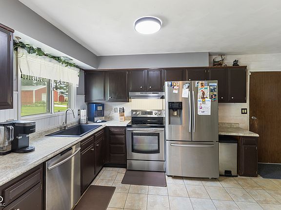 Craving a little more peace and a lot more space? Escape the noise and discover this charming 2-bed, 1.5-bath ranch on nearly half an acre tucked just outside downtown Greencastle. With no HOA, no subdivision rules, and wide open skies, this is small-town Indiana living the way it was meant to be-private, peaceful, and full of potential. Step onto the welcoming covered front porch and into a cozy yet open floorplan that invites you to relax and stay awhile. The large living room anchors the home and leads to the back of the home where the kitchen opens to a sunlit dining nook with a wood-burning fireplace-imagine chilly mornings sipping coffee by the fire or summer evenings stepping through the patio doors to your fenced-in backyard oasis. The kitchen offers a backyard view from the sink, stainless steel appliances, and just enough charm to feel like home from day one. The primary suite features its own half-bath with an extended vanity, while the second bedroom shares access to the full hall bath. Need space for your hobbies or storage? This property includes an attached 2-car garage and a mini barn/storage shed-ideal for tools, toys, or even turning into a garden shed or workshop. Out here, there's room to breathe, room to grow, and room to make your vision a reality-all while being minutes from downtown Greencastle, DePauw University, and local shops and restaurants. Opportunities like this don't come often-a home on a large lot, outside of a subdivision, with charm, updates, and freedom to live how you want. If you've been waiting for the right home in the right location at the right price-this is it. Don't wait-schedule your private showing today and see how life could feel when you finally have the space to live it your way!