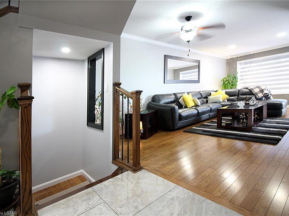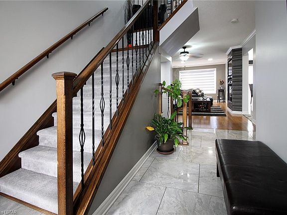 Stunning two-story home pride of ownership from the moment you enter. Freehold NO CONDO FEE. Extensive list of premium upgrades include hardwood floor in living room, gleaming 24x24 porcelain tile in foyer, powder room, kitchen and dining area. Fully finished basement includes extra bedroom, three piece bathroom and large laundry room. Three bedrooms in the second floor with four piece cheater ensuite and walking closet in master bedroom. Laminate floor in upper landing and den area. Gorgeous stair railing with metal spindles give the house fresh contemporary look. Roof shingled in 2020. Large deck (19' x 16') with Gas hookup for BBQ. Brand new public school being built blocks away on Meadowgate. Victoria Hospital is at a short driving distance. Minutes from the 401 and 402. Call now to book your private showing.