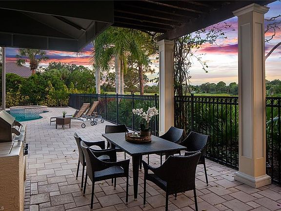 Delightfully sunny home with soothing golf course and lake views on a prime, quiet cul-de-sac street in the heart of Collier's Reserve! This sprawling home boasts gleaming travertine floors, huge windows & zero-edge pocket sliding doors for panoramic views, and a terrific floor plan for entertaining or everyday living. Lovely light hickory kitchen with center island, double oven and large eating area with fabulous views. Luxury master suite with cozy seating nook or second office space, massive closet with built-ins, luxury bath with oversized shower and jacuzzi tub. Large single-level pavered lanai offers a picturesque pool & spa, covered sitting area, and large rear dining and grilling area under the pergola. Generous architectural detail throughout, air-conditioned garage and storage closet and beautiful timeless front elevation all complete the package. Conveniently located just 2 miles to Vanderbilt Beach, Collier's Reserve offers intimate living within its 450 pristine nature-filled acres, a gorgeous Championship Arthur Hill Golf Course, active tennis, pickleball, bocce, a new state-of-the-art fitness center, new casual riverfront Boat House dining & gorgeous Club.