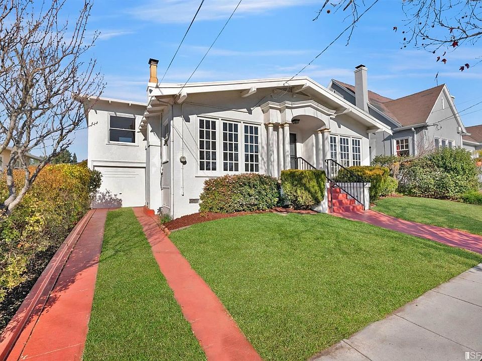 This large and lovely 2BD/1BA Craftsman, nestled at the gentle crest of the Hampel Avenue hill in the Heart of coveted Glenview, greets visitors with a verdant front lawn, regal facade and stately porch with roman columns and arches. Once inside, the South-facing home boasts an inviting living room with floor-to-ceiling windows and fireplace, a formal dining room with additional bright windows, an open kitchen with an adjoining breakfast and laundry room, AND two ample bedrooms with a full bath in between. Warm hardwood floors, fresh paint and lots of period charm run through-out. A private rear porch, low maintenance yard with patio/BBQ area, and a garage with storage complete this attractive offering. Excellent location, close to Glenview Elementary, Park Blvd shopping and dining, Dimond District amenities (Safeway, Farmer Joe's market, Dimond Park) AND easy access to 580/13 freeway and public transit access.