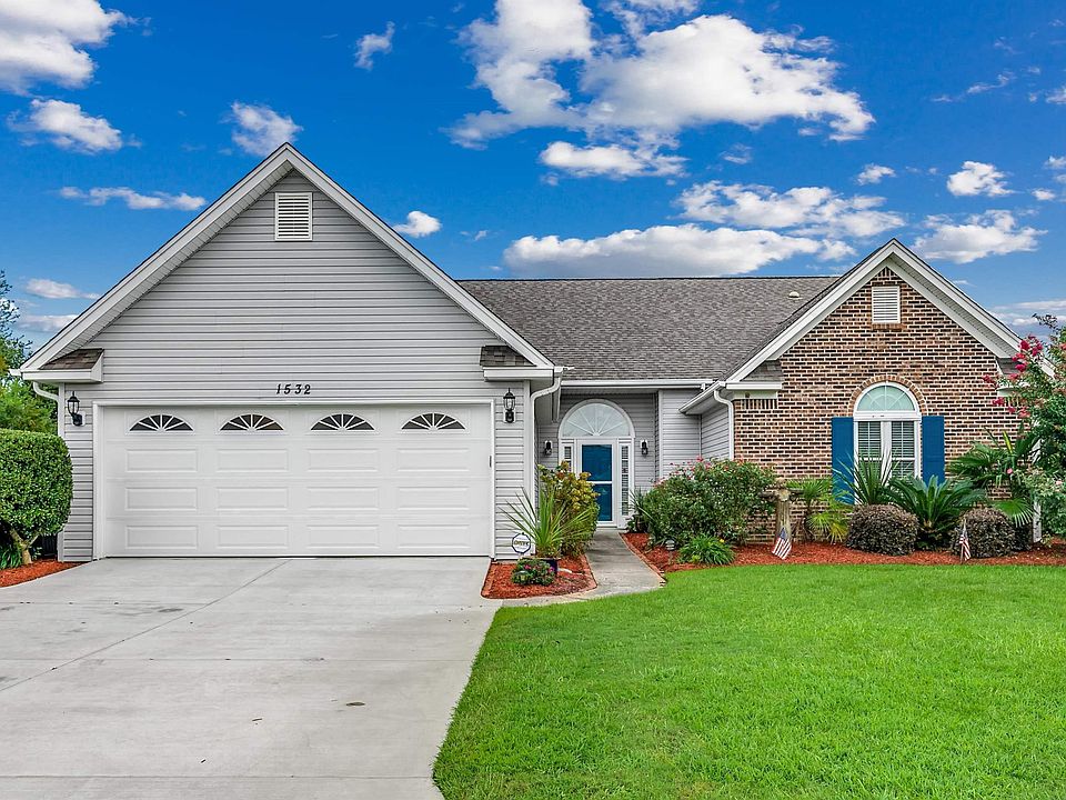 1532 Heathmuir Drive, Southwood subdivision, Surfside Beach is situated on a fourth of an acre that backs up to a community lake/channel. This three-bedroom, two-bathroom, approximately 2705-heated square foot home offers an oversized two-car garage, one-level living, low maintenance of vinyl siding, and a generous screened-in porch. You enter the home through the living room, which is the hub of the house and gives access to the kitchen, bedrooms, dining room, family room, and onto the exterior living space. The refurbished eat-in kitchen includes granite countertops, a tile backsplash, a counter-height breakfast bar, and slate stainless-steel appliances. The master suite has a private bathroom with decorative vanity, water closet, separate shower and garden tub, a walk-in closet with built-ins, and two offices/hobby spaces. The family room with custom built-ins has direct access to the screened porch, patio, and large backyard. All windows/blinds, carpeting/laminate flooring, toilets, heating/cooling system, gutters/roof, and the driveway have been replaced, along with many other improvements since 2016. Southwood provides two community pools, is conveniently located between Highway 17 Bypass and Highway 544, and is close to everything yet provides a quiet residential feel. All this is just two miles to the beach. You're close to a grocery store, restaurants, Wal-Mart/Lowes/Target, gas stations, and smaller specialty shops on the golf cart. In the car, you're only minutes away from everything Myrtle Beach offers. Make sure to check out the Matterport 3D Virtual Tour. It's like you're walking through the house. Link to the virtual tour: www.bit.ly/1532HeathmuirDr. The property is back on the market at no fault of the sellers or the home. The sale on the buyer's home fell through.